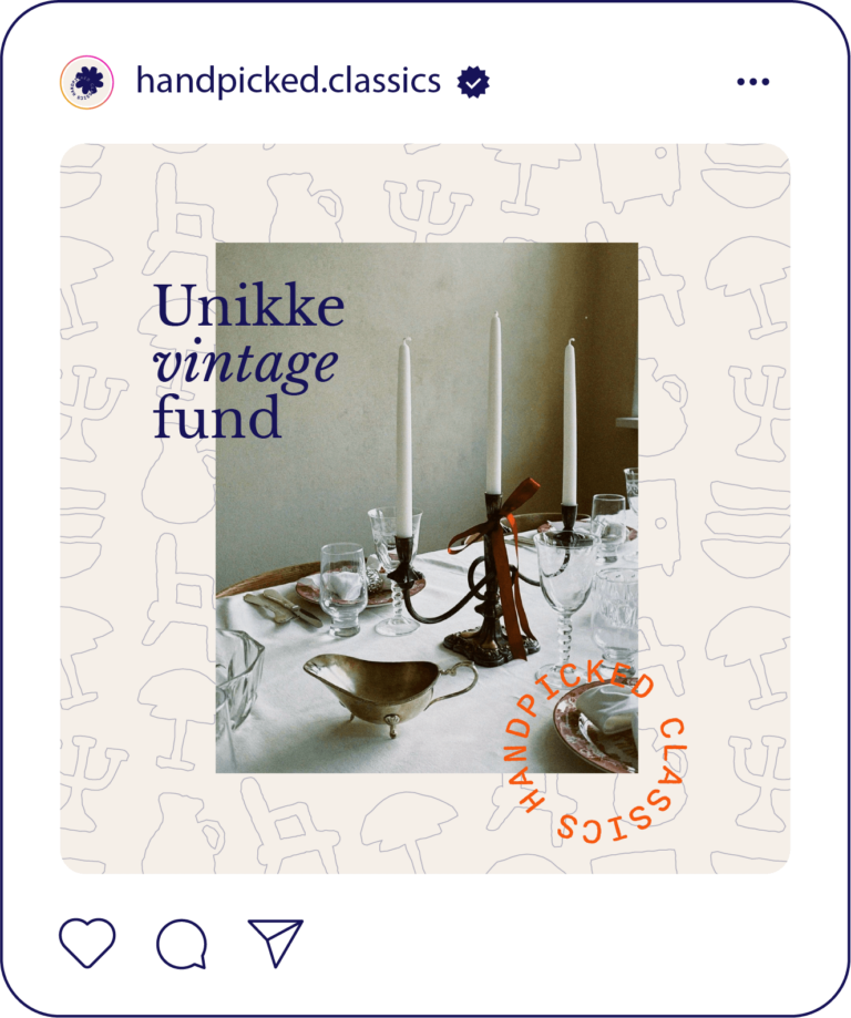 På tværs af forskellige touchpoints (fra Instagram-opslag til emballage) forbliver den visuelle identitet konsekvent og skaber en sammenhængende brandoplevelse. Hver eneste detalje, fra valg af typografi til farvepalette, er nøje gennemtænkt for at indkapsle essensen af Handpicked Classics – et fristed for dem, der værdsætter skønheden i vintagefund og de historier, de fortæller.